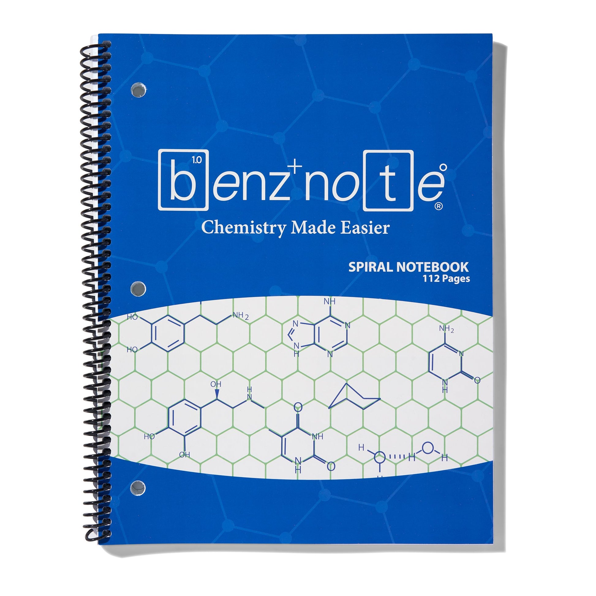 This spiral notebook features Benznote’s hexagonal graph rule, making it ideal for drawing chemical structures. It's crafted from high-quality paper sourced in America, offering a smooth writing experience. The semi-transparent hexagons allow for easy reading and writing.